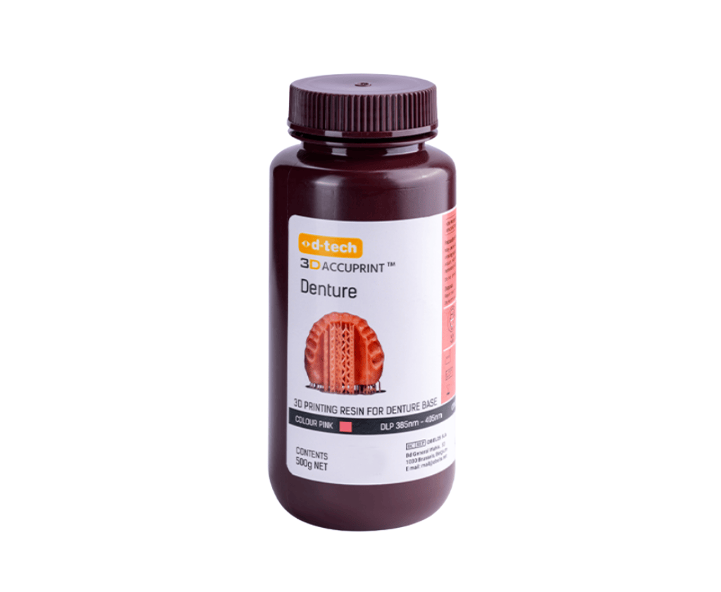 A 3D Accuprint Denture gyantát kifejezetten fogsortalpok nyomtatásához fejlesztették ki. Kiváló felületi kikeményedést biztosít, és magas esztétikai szintre polírozható, így természetes, élethű megjelenést eredményez.